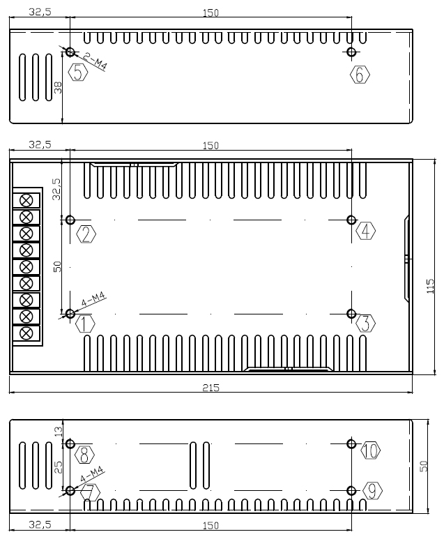 絕緣阻抗 | I/P-O/P:50M ohms;I/P-Case:50M ohms;O/P-Case:50M ohms | ||