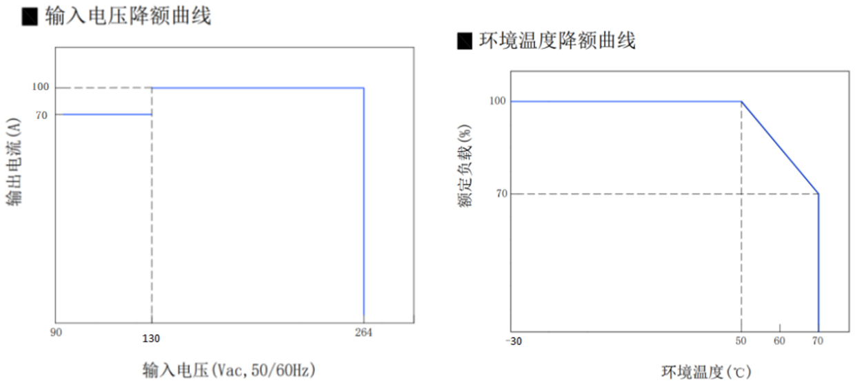 輸入 | 電壓范圍 | 90~264VAC(請(qǐng)參考降額曲線) | |||